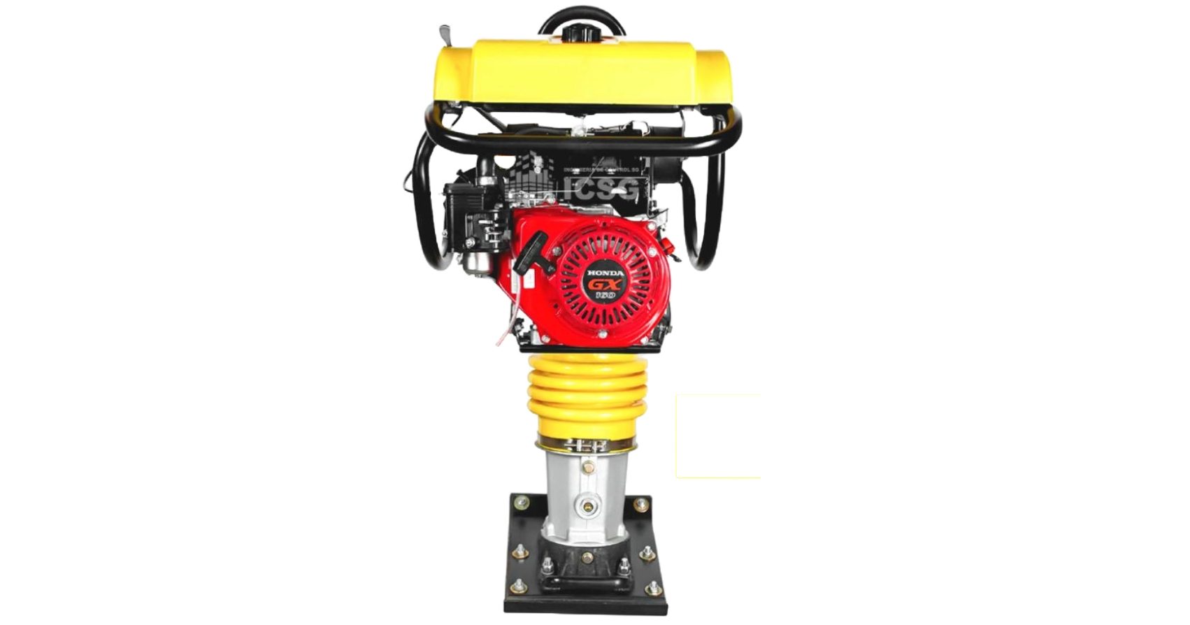 Producto adecuado para la consolidación de terrenos, compactación de suelos, ideal para zanjas y zonas estrechas, de fácil manejo y versátil. Genera compactación mediante golpe, debido a un pistón interno, dentro de un resorte y que lleva hidrolina blanca grado 10, el cual protege del choque de base y pistón. Cuanta con una zapata de 33 cm x 28.5 cm, hecha con capas de madera, caucho y metal. Cuerpo y estructura metálico. Motor OHV, de fuerza, con arranque manual marca Honda. Soporte de agarre para un fácil trabajo con el producto. Tanque y acelerador de combustible en la parte superior, separado del motor. Puede compactar hasta 440 mt2 por hora, aproximadamente, dependiendo del operario y el tipo de suelo.